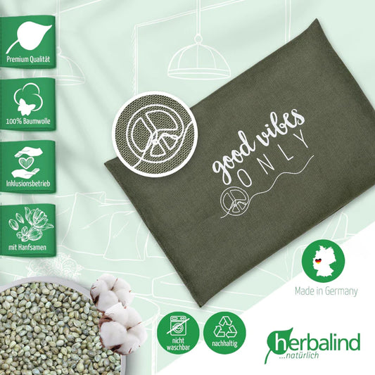 AusverkauftHANF WÄRMEKISSEN OLIVGRÜN, 30X20 CM, GOOD VIBES