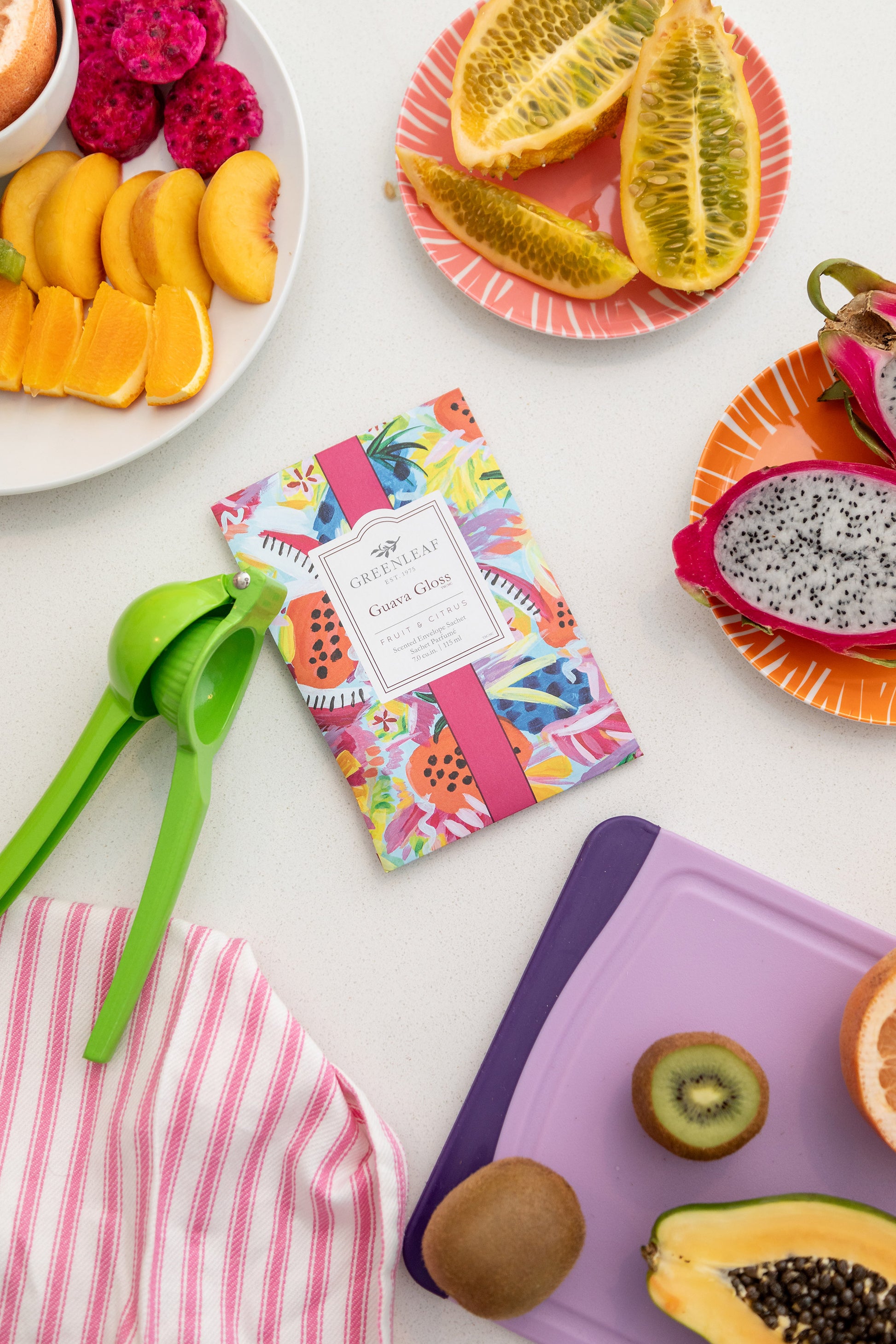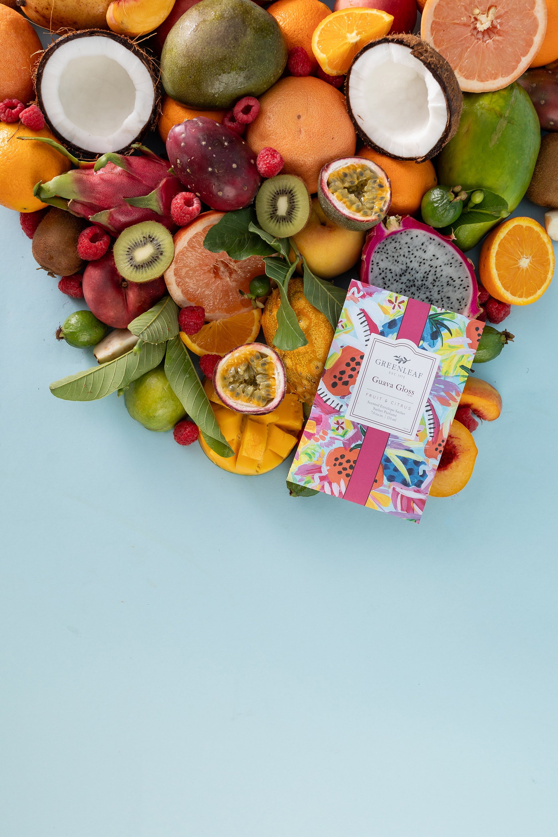 Guava Gloss ist ein strahlender, tropischer Duft mit Mandarine- und Grapefruitaromen in der Kopfnote. Im Mittelteil harmonieren die exotischen Noten von Guave und Passionsfrucht perfekt mit der Cremigkeit von Kokosnussmilch. Ein wunderbarer Duft für sonnige Urlaubserinnerungen und endlosen Sommerstunden.