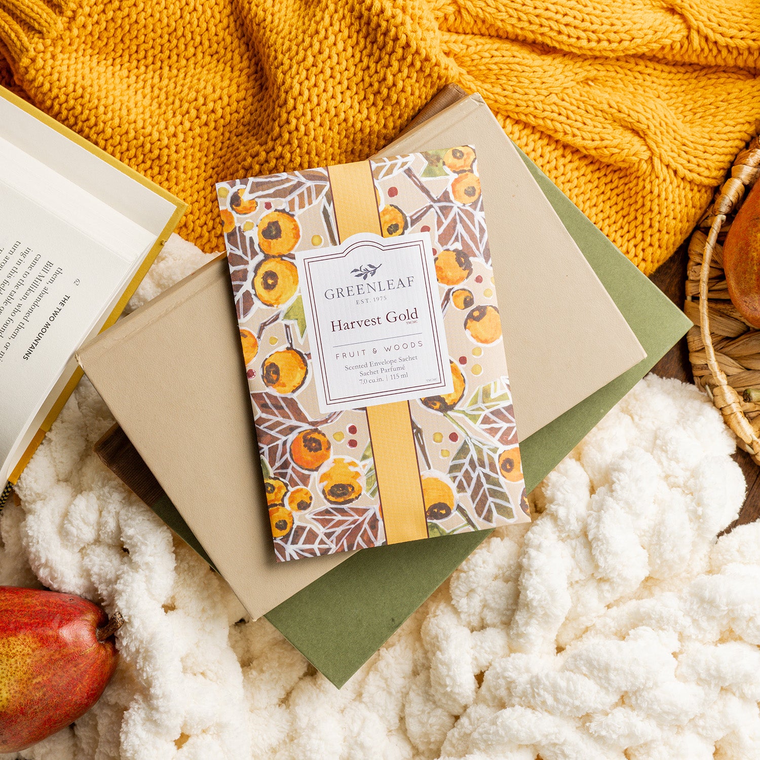Harvest Gold ist eine Hommage an die frühen Jahren von Greenleaf. Der goldene Duft passt in die bunte, würzig duftende Herbstzeit mit ihrer Farbenpracht und den intensiven Düften, zu Kürbissen, Gewürzplätzchen und Punsch.